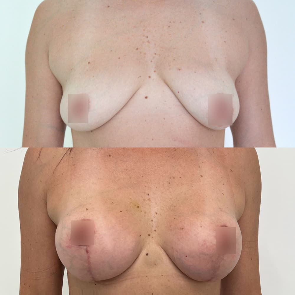 Пластический хирургЕсли ваша грудь склонна к птозу, то лучше не выбирать большие импланты, ограничившись увеличением на 1-1,5 размера, т.к. большие импланты будут нагружать грудь и приводить к повторному обвисанию.